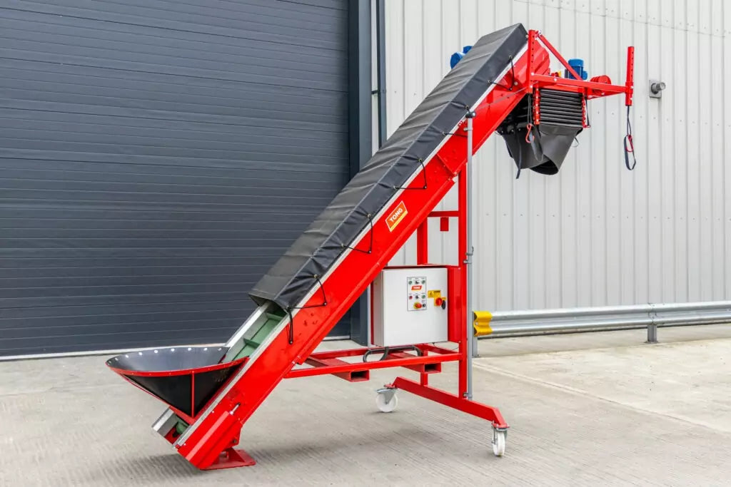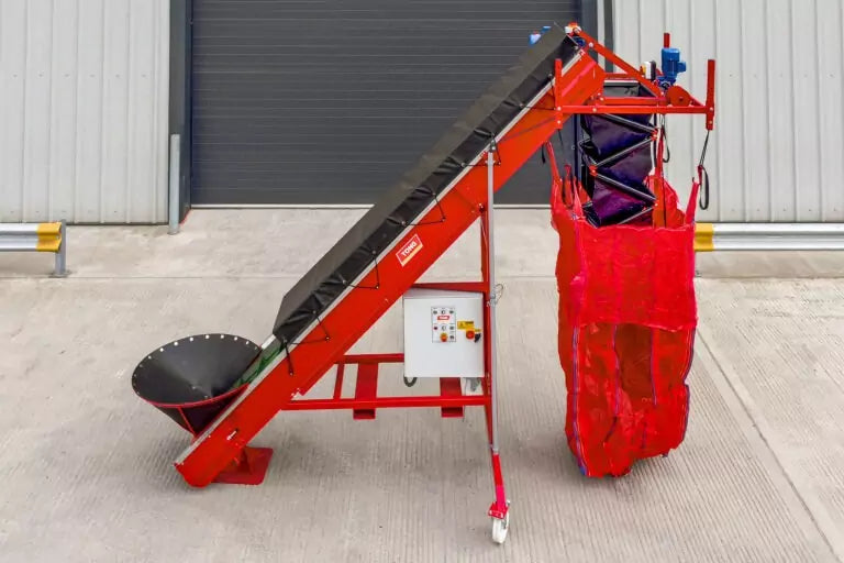 Featuring a uniquely designed, rubber powered cascade, crop gently cascades down a series of closely positioned chutes, into the big bag. When filling the bag, the cascade is automatically controlled via a sensor, ensuring crop is always placed into the bag with minimal drop. Standard models are available with a choice of a 500mm or 600mm wide cascade.